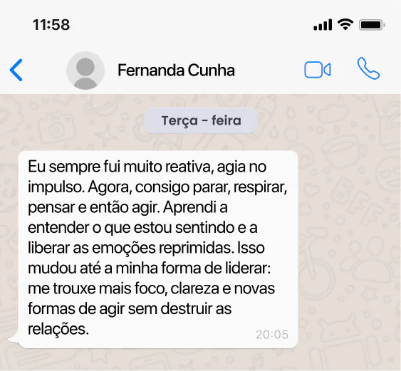 Antes eu agia no impulso… agora lidero com clareza e equilíbrio.