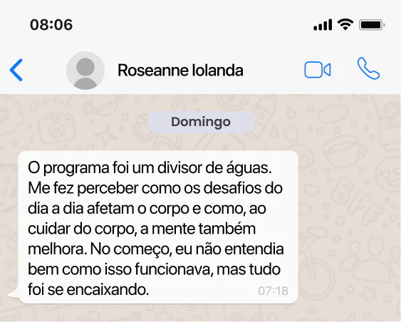 Quem nunca fez geralmente sente os efeitos mais rápido, porque o corpo responde logo às práticas. Basta estar disposto a dar pequenos passos diários. E mesmo que para ti seja mais difícil, eu estarei junto contigo para tirar dúvidas e te orientar. Confia, o corpo sabe o caminho.